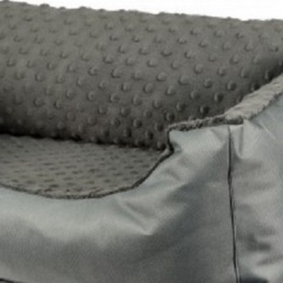 Pokrowiec do legowiska wykonany z zewnątrz z kodury - materiału bardzo wytrzymałego, a także odpornego na uszkodzenia. Wnętrze jest wykonane z materiału typu minky (w kropeczki) - bardzo przytulny i miękki.