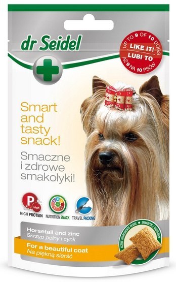 Smakołyki dla utrzymania pięknej skóry i sierści zwierzęcia. Szczególnie polecane w czasie linienia, przy problemach z sierścią i skórą oraz przed wystawami. Doskonała przekąska między posiłkami lub nagroda w czasie szkolenia (jako treserki).