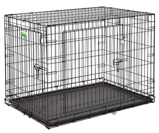 Klatka posiada dwie pary drzwi, co ułatwia dostęp do pupila będącego wewnątrz. Drzwi umieszczono na krótkim oraz długim boku klatki, co daje większe możliwości ustawienia i dopasowania przestrzennego klatki. Dodatkowo niski próg umożliwia komfortowe wchodzenie psa do klatki.