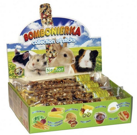 Bombonierka dla gryzoni i królików to zestaw 12 kolb w 7 smakach: