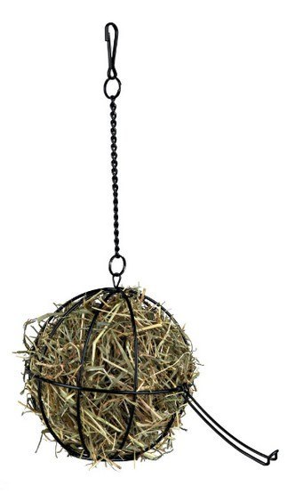 Po wypełnieniu kuli pokarmem należy ją zawiesić w klatce. W ten sposób zwierzę jest motywowane do aktywności by zdobyć pożywienie.