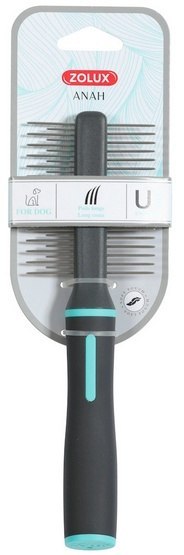 Grzebień dwustronny delikatnie rozczesuje, usuwa martwy podszerstek i wygładza sierść. Strona z szeroko rozstawionymi zębami rozczesuje i wygładza sierść, zapobiegając powstawaniu kołtunów. Zaokrąglone na końcach zęby chronią skórę zwierzęcia przed podrażnieniem.