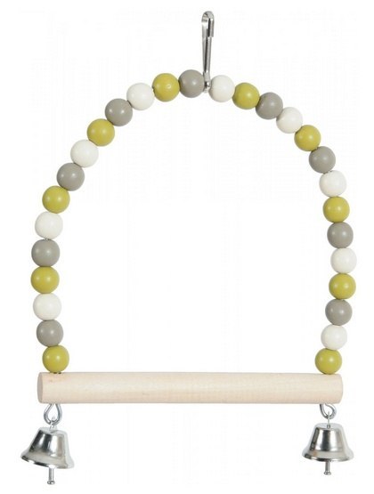 Huśtawka z drewnianą żerdką i dzwoneczkami to idealny dodatek do klatki dla ptaków. Zapewni zwierzęciu dużo rozrywki, dostarczy stymulacji intelektualnej i urozmaici jego otoczenie.
